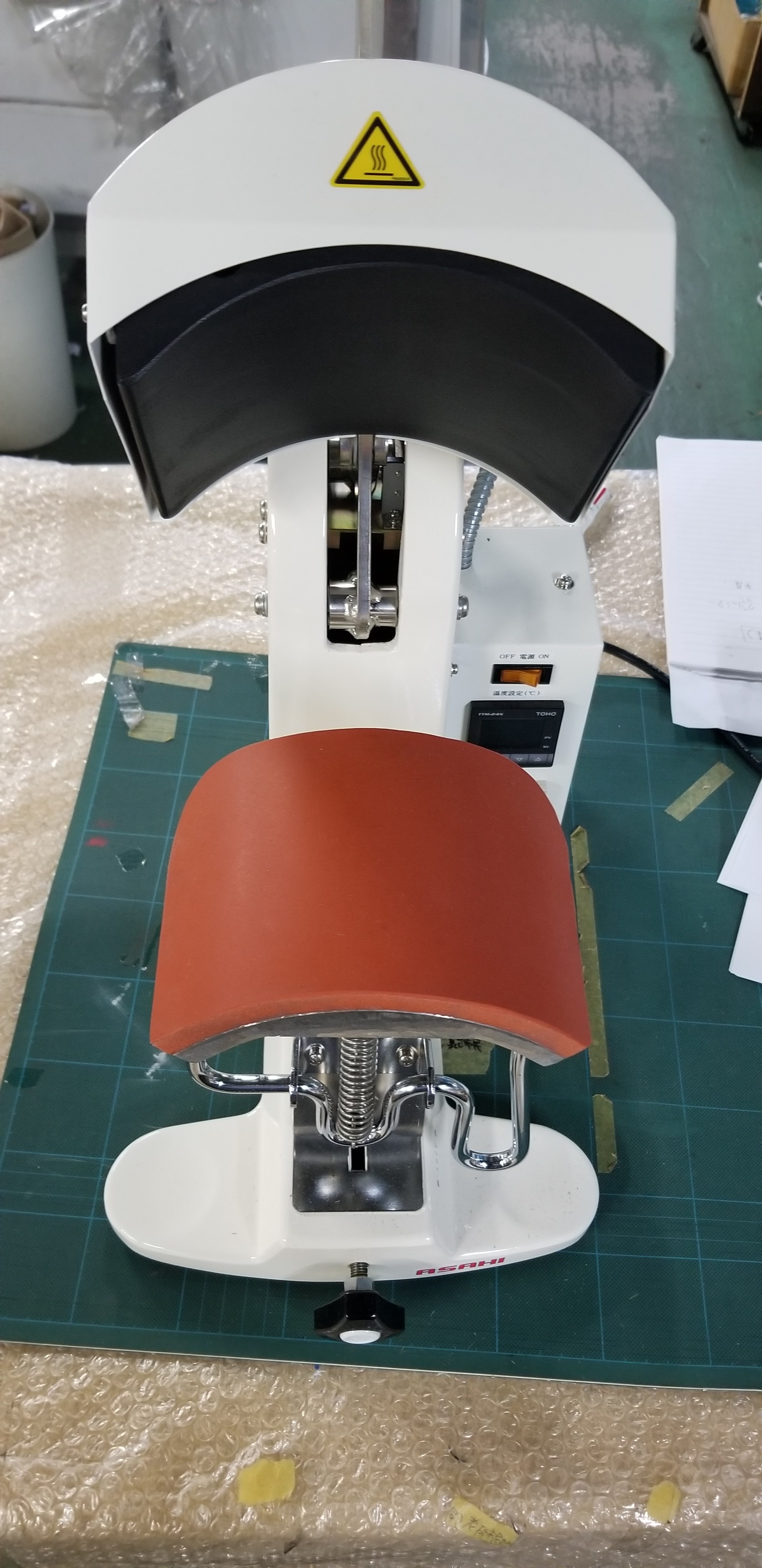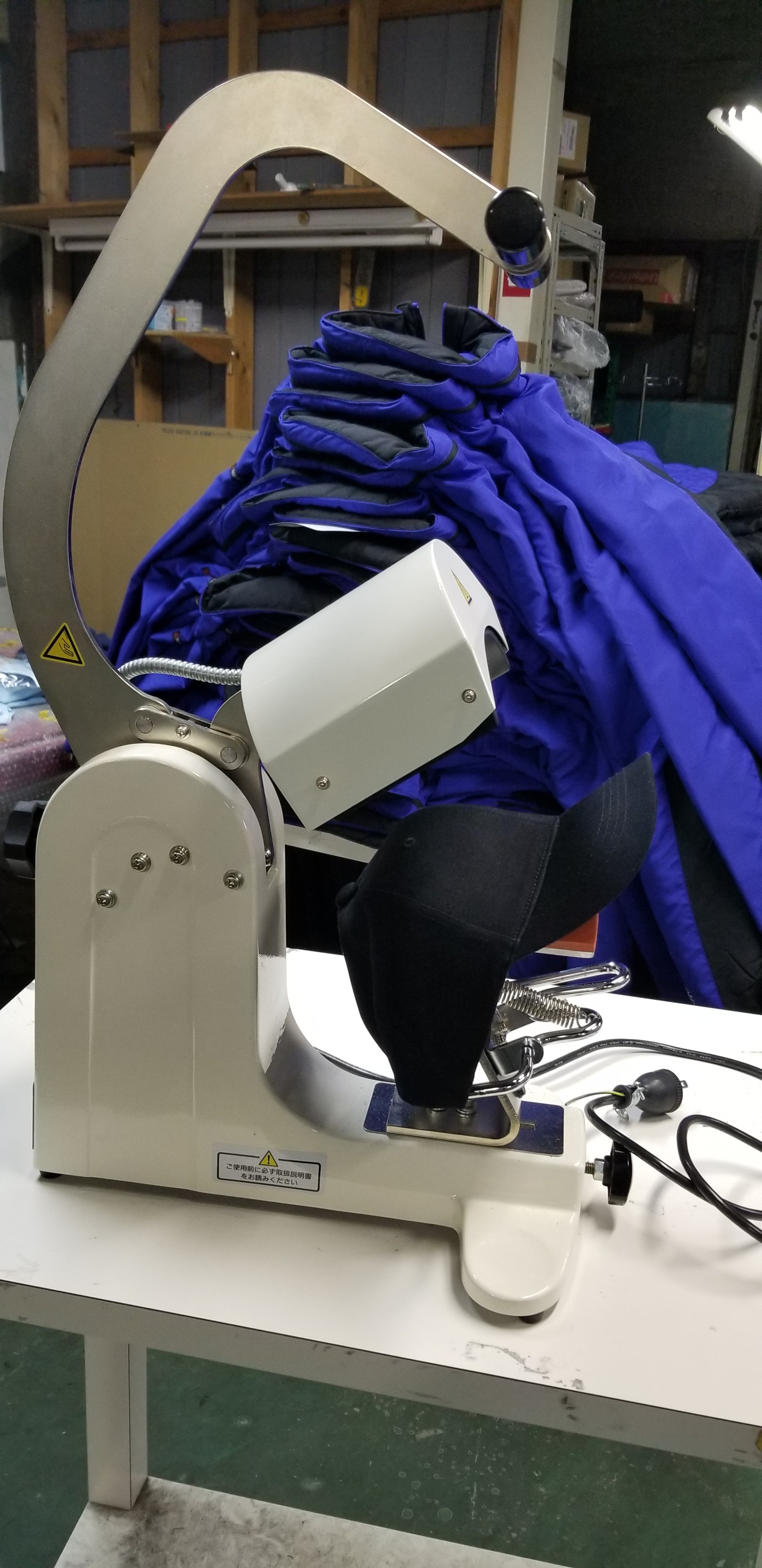 長年使用してきたキャップ用プレス機がダメになったので新しくしました。キャップの印刷や刺繍もしますが、カラーのプリントの時は転写プリントになりますので、この機材が必須になります。大事に使わせてもらいますよ!